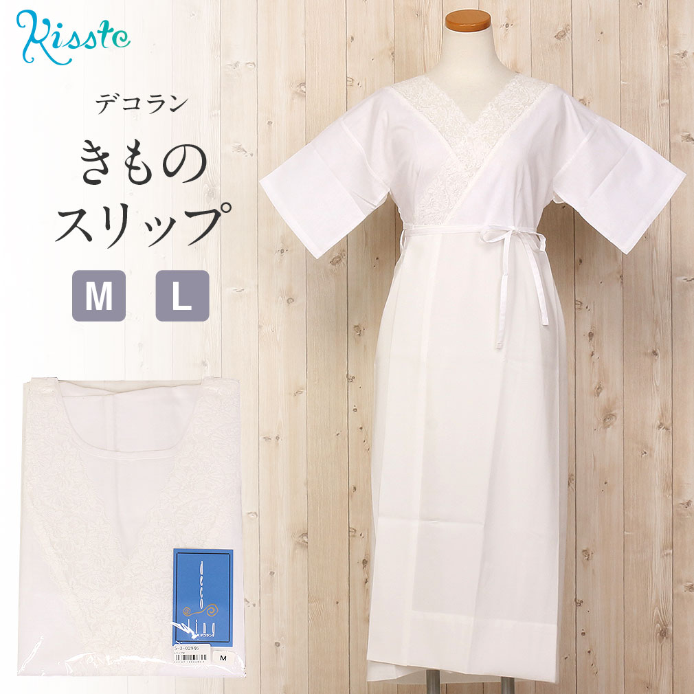 きものスリップ M / L サイズ <デコラン> 綿 ポリエステル 【メール便対応可 ワンピース スリップ 袷 和装小物 着付け小物 着物 肌着 肌襦袢 和装下着 裾よけ decoling 結婚式 披露宴 卒業式 入学式 お宮参り 七五三 白】