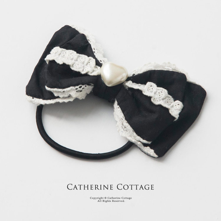 メールマガジン登録は、こちら ハートリボンゴム パール調のハートモチーフとフリルのついたキュートなリボン型のゴム。